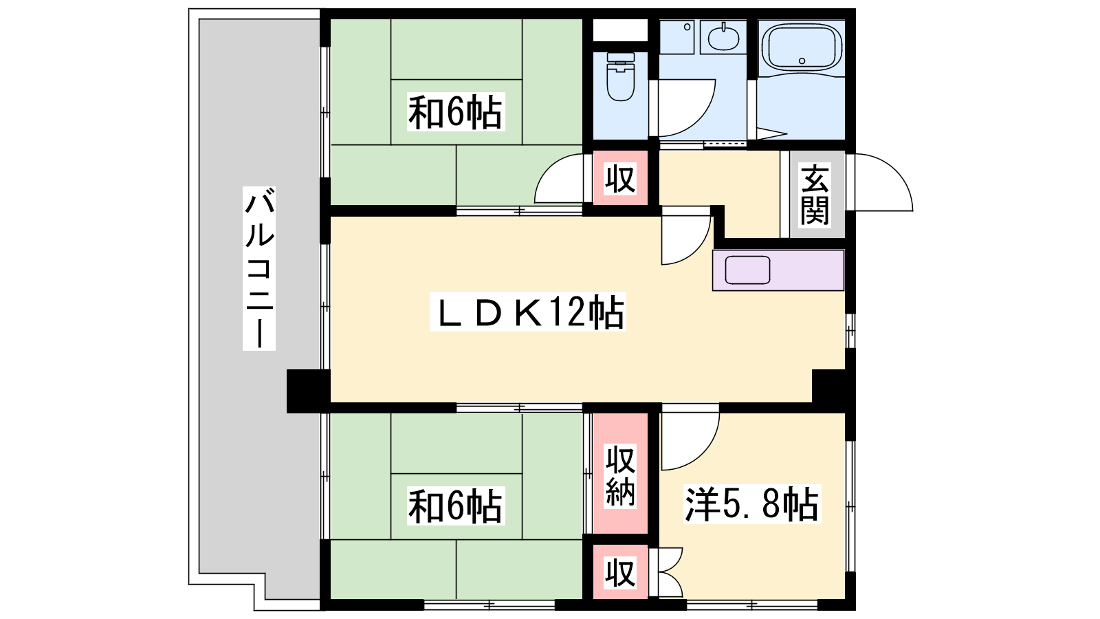 - LDK12帖、洋室5.8帖、和室6帖、和室6帖