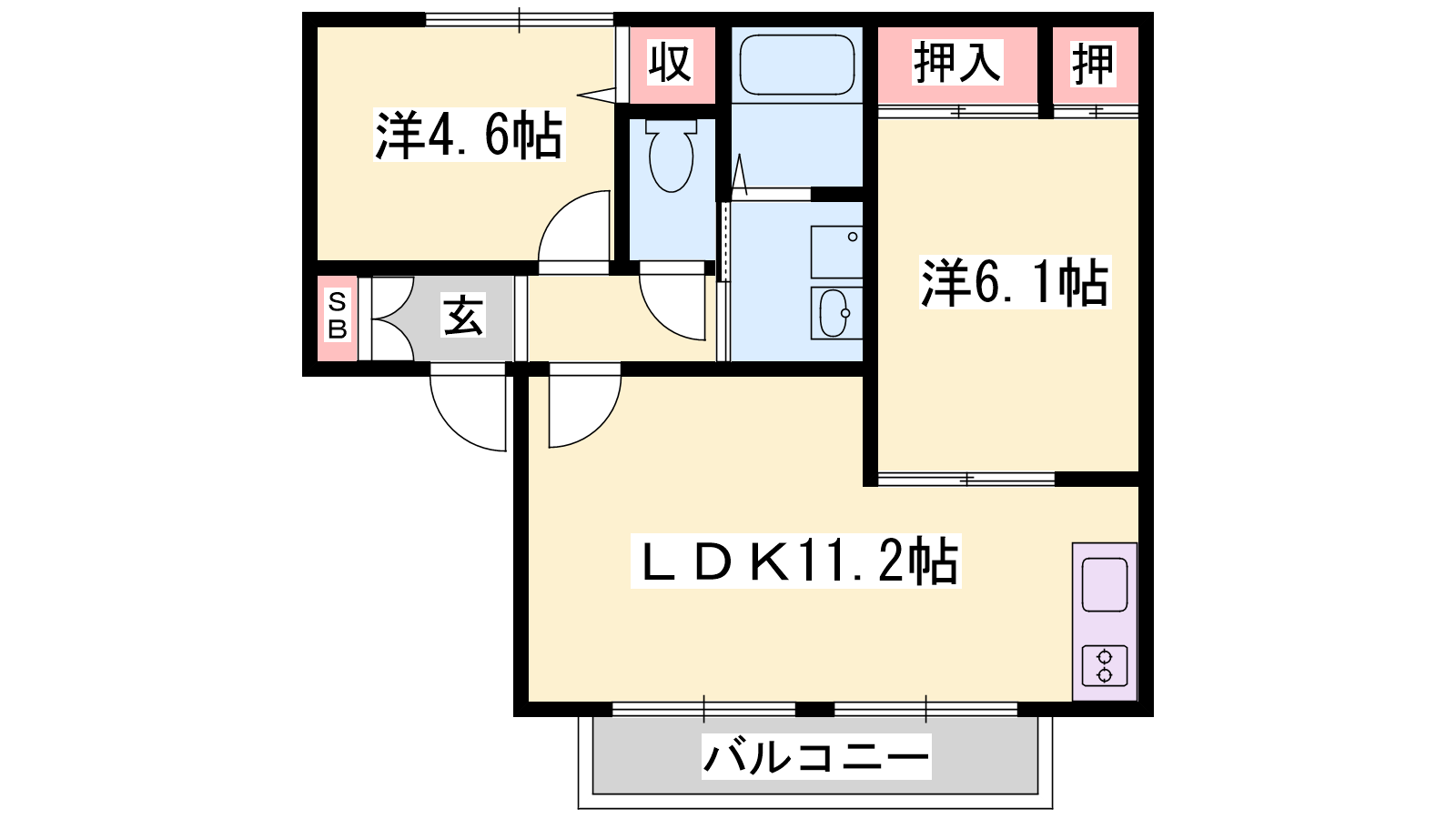 - LDK11.2帖、洋室6.1帖、洋室4.6帖