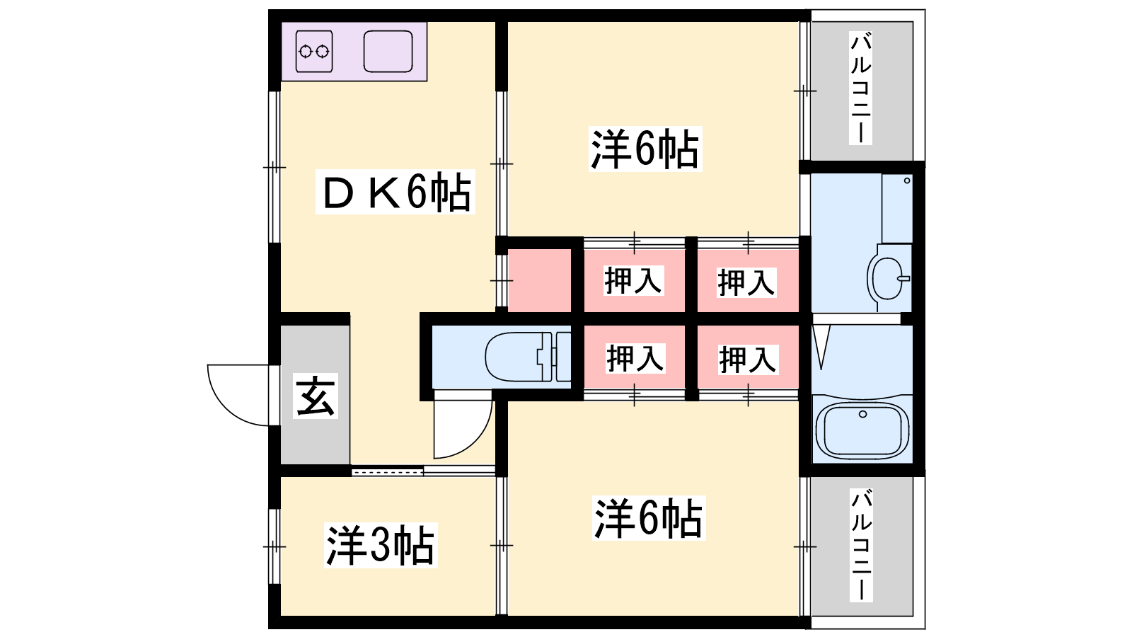 - DK6帖、洋室6帖、洋室6帖、洋室3帖