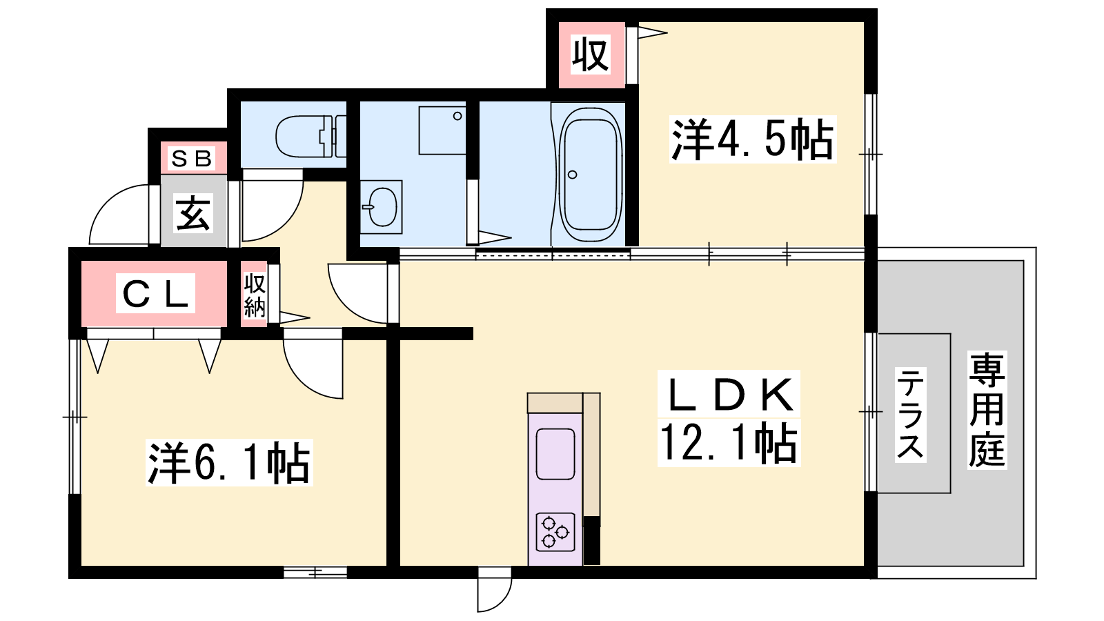 - LDK12帖、洋室6帖、洋室4.5帖