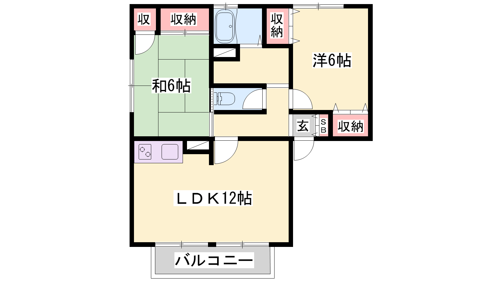 - LDK12帖、洋室6帖、和室6帖