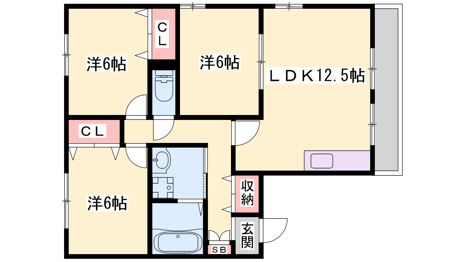 - LDK12.5帖、洋室6帖、洋室6帖、洋室6帖