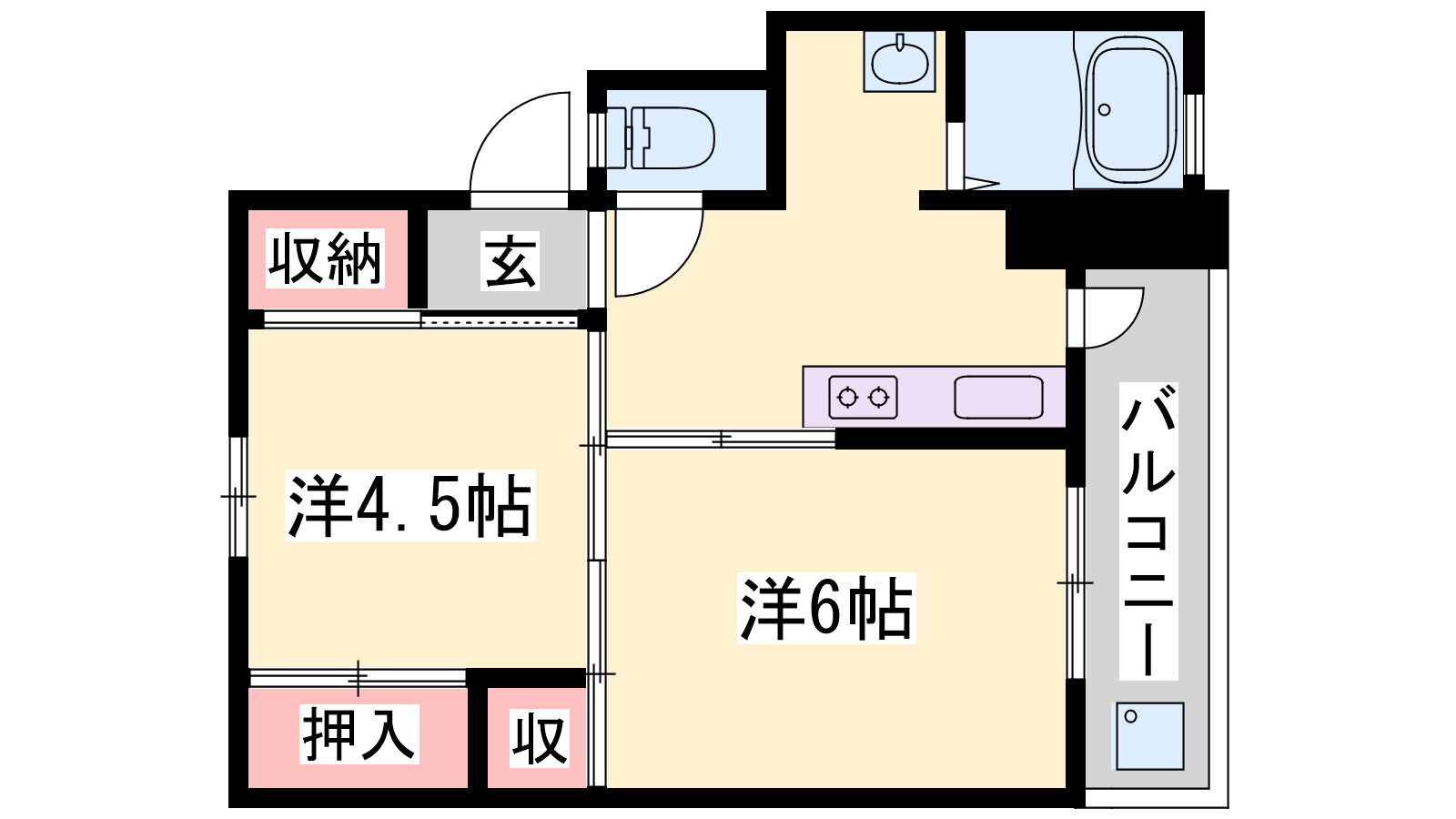 - K4帖、洋室6帖、洋室4.5帖