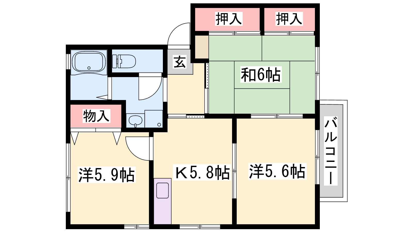 - K5.8帖、洋室5.9帖、洋室5.6帖、和室6帖