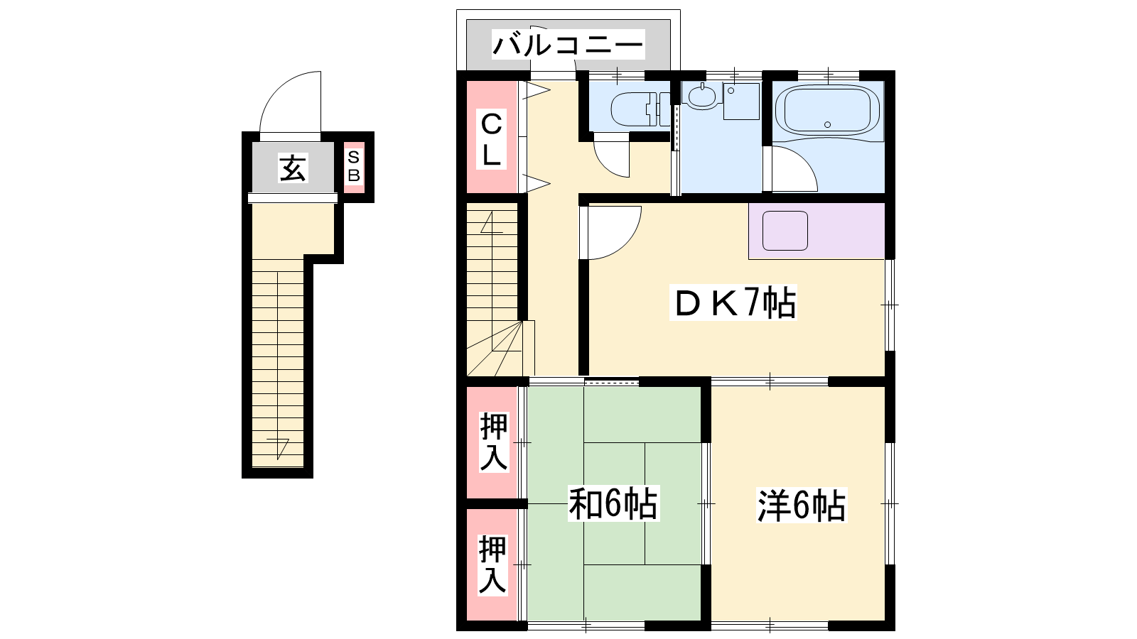 - DK7帖、洋室6帖、和室6帖