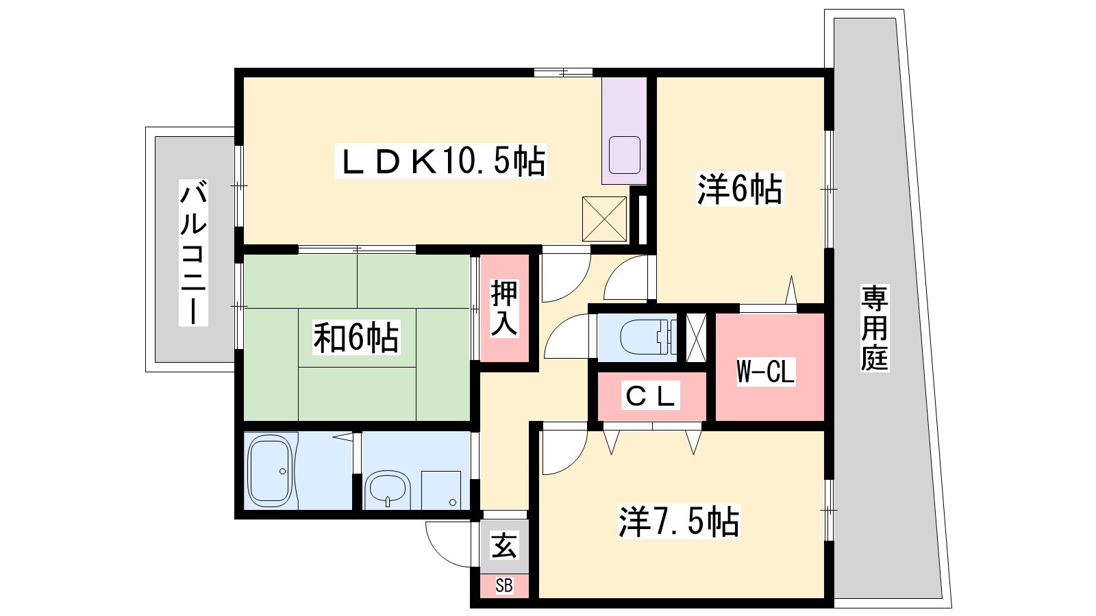 - LDK10.5帖、洋室7.5帖、洋室6帖、和室6帖