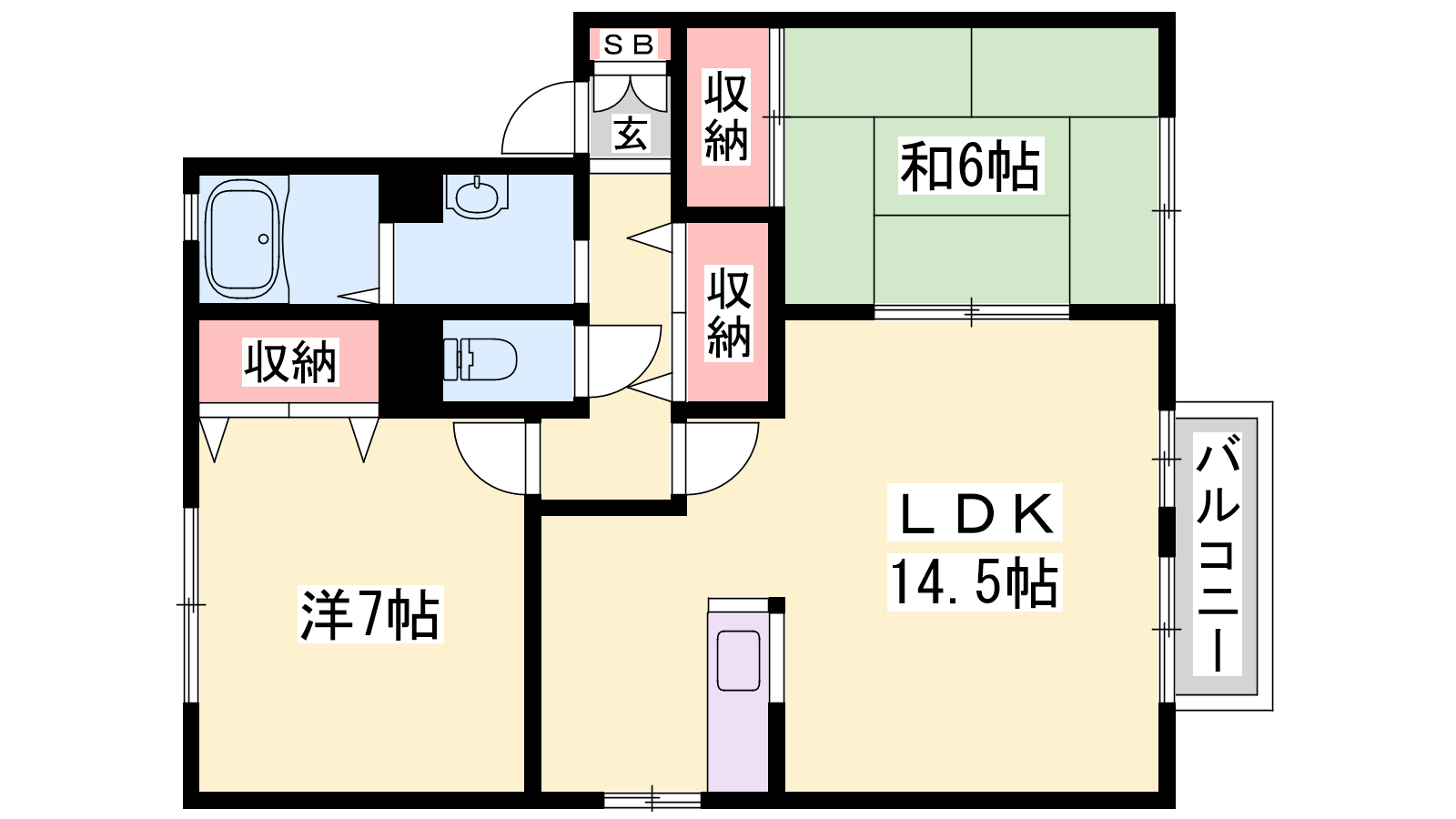 - LDK14.5帖、洋室7帖、和室6帖