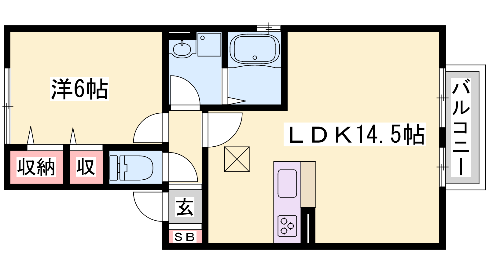 - LDK14.5帖、洋室6帖