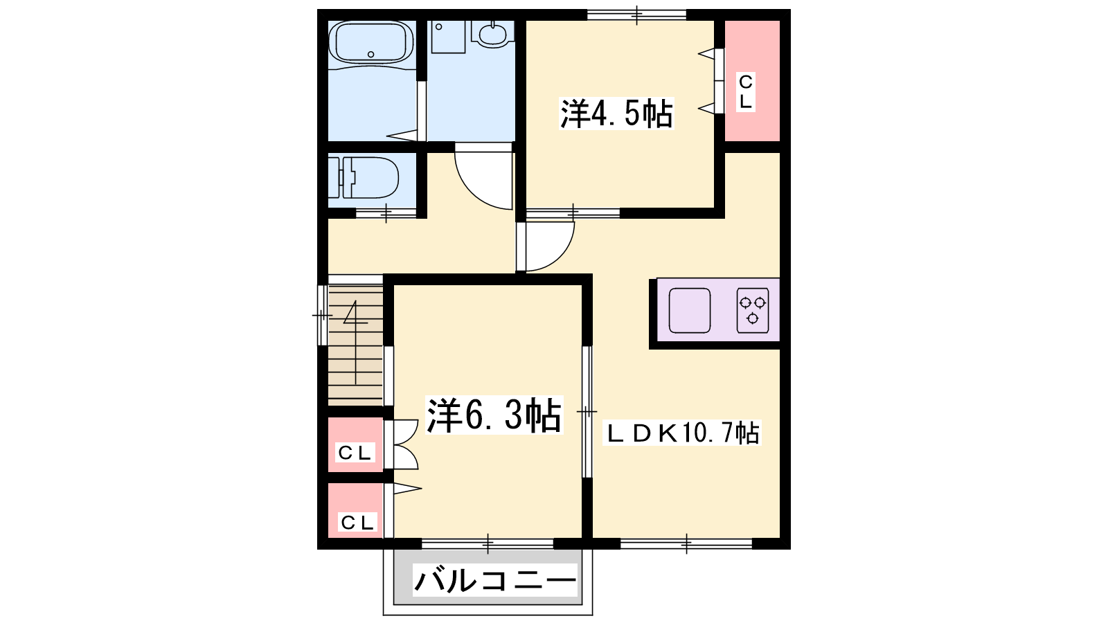 - LDK10.7帖、洋室6.3帖、洋室4.5帖