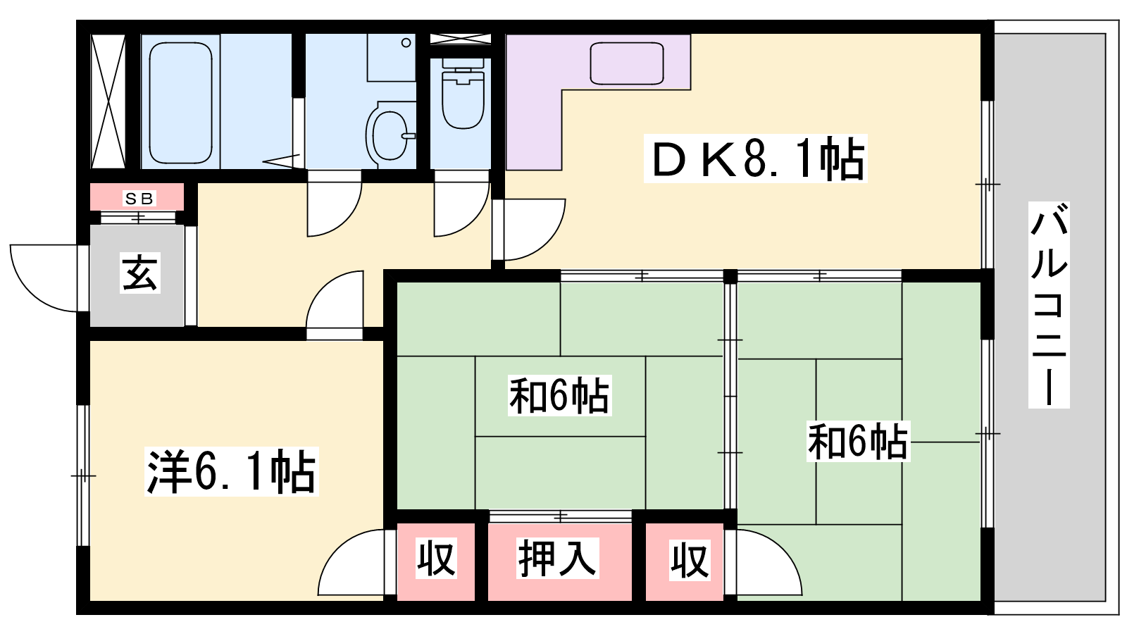 - DK8.1帖、洋室6.1帖、和室6帖、和室6帖
