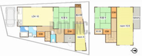 - LDK10帖、和室8帖、洋室4帖、洋室10.5帖、和室6帖