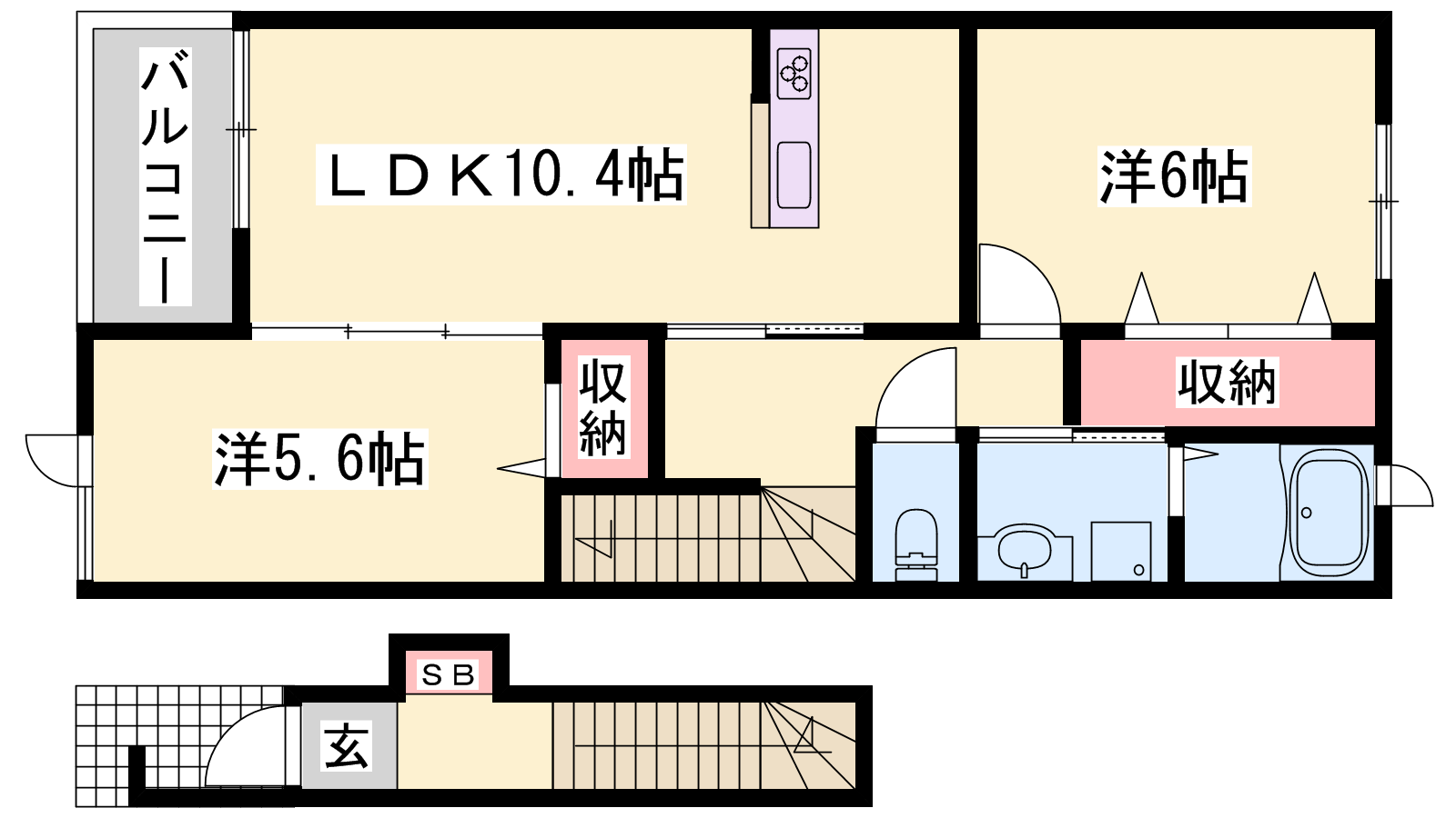 - LDK10.4帖、洋室6帖、洋室5.6帖