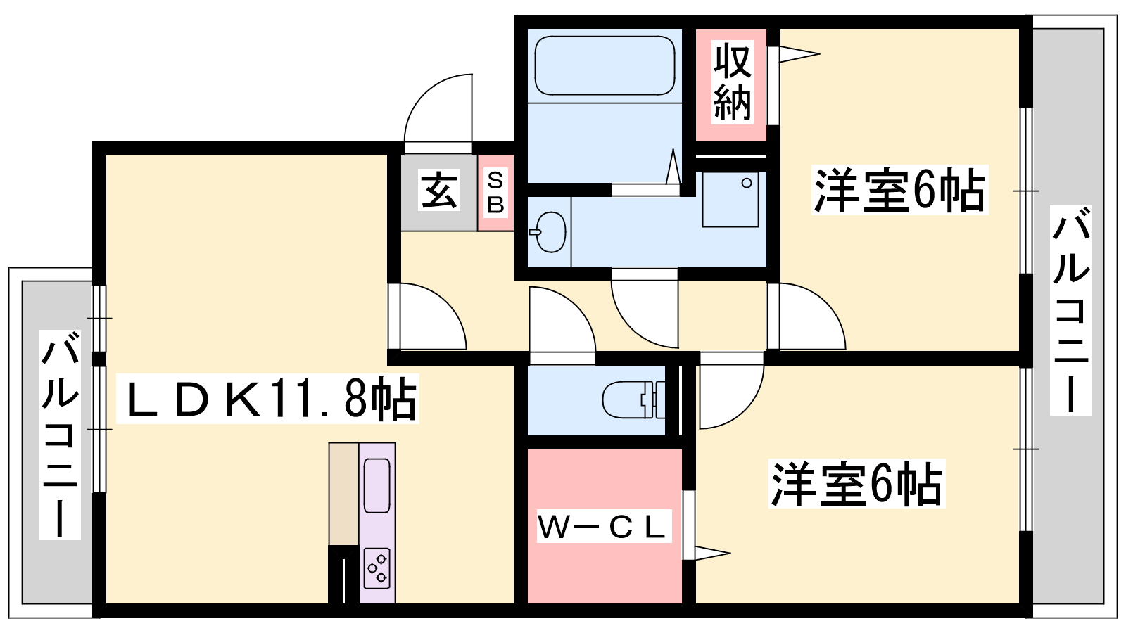 - LDK11.8帖、洋室6帖、洋室6帖
