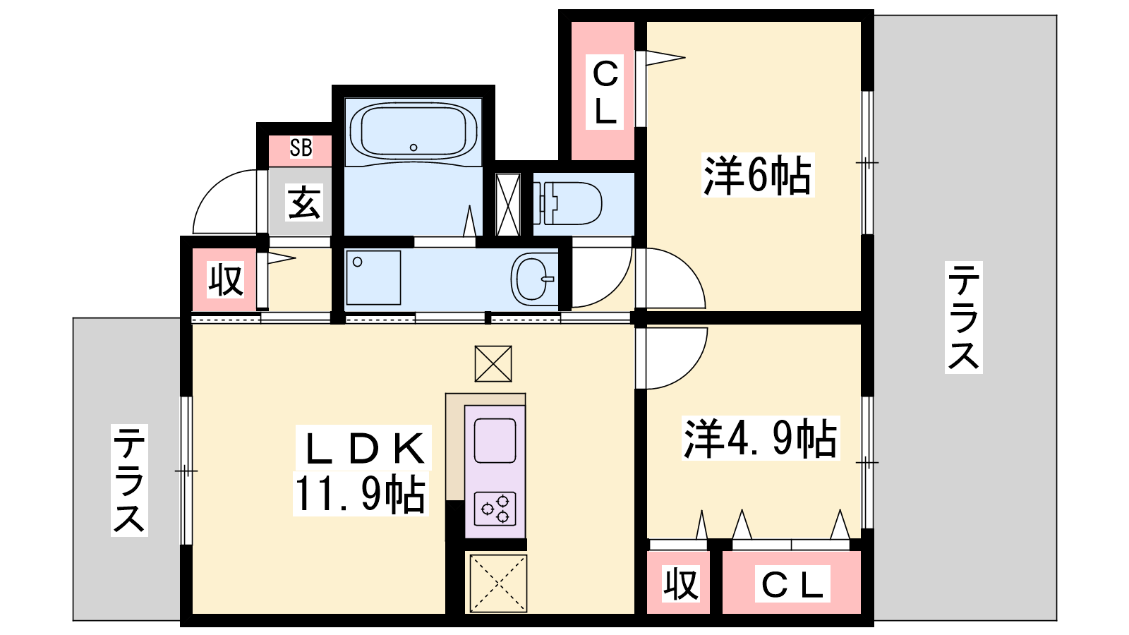 - LDK11.9帖、洋室6帖、洋室4.9帖