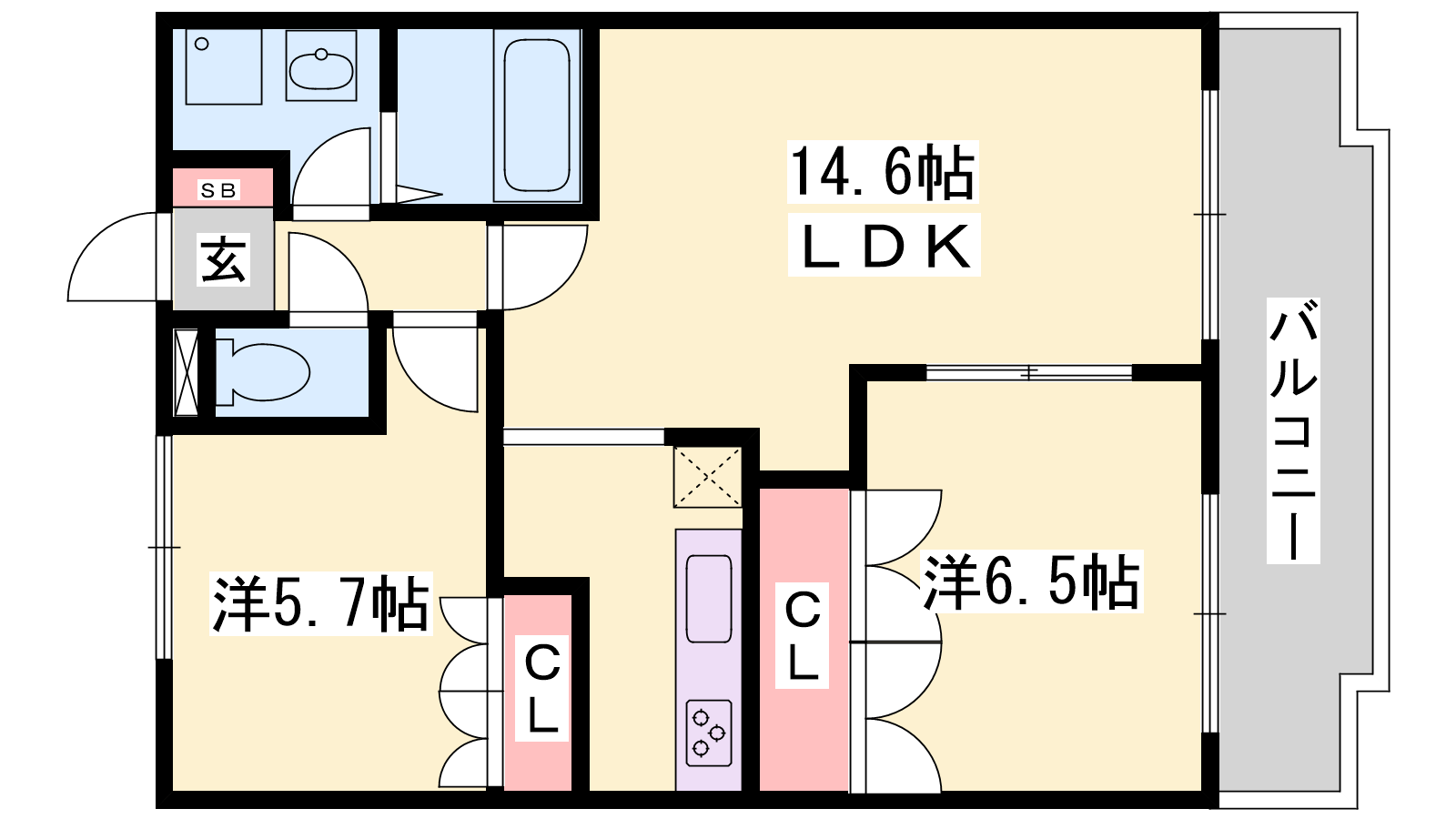 - LDK14.6帖、洋室6.5帖、洋室5.7帖