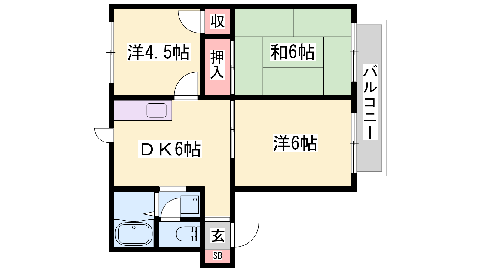 - DK6帖、和室6帖、洋室6帖、洋室4.5帖
