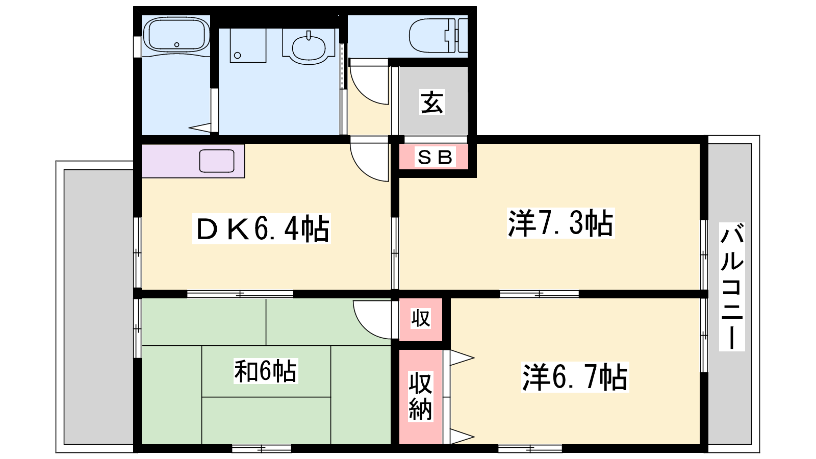 - DK6.4帖、洋室7.8帖、洋室6.7帖、和室6帖