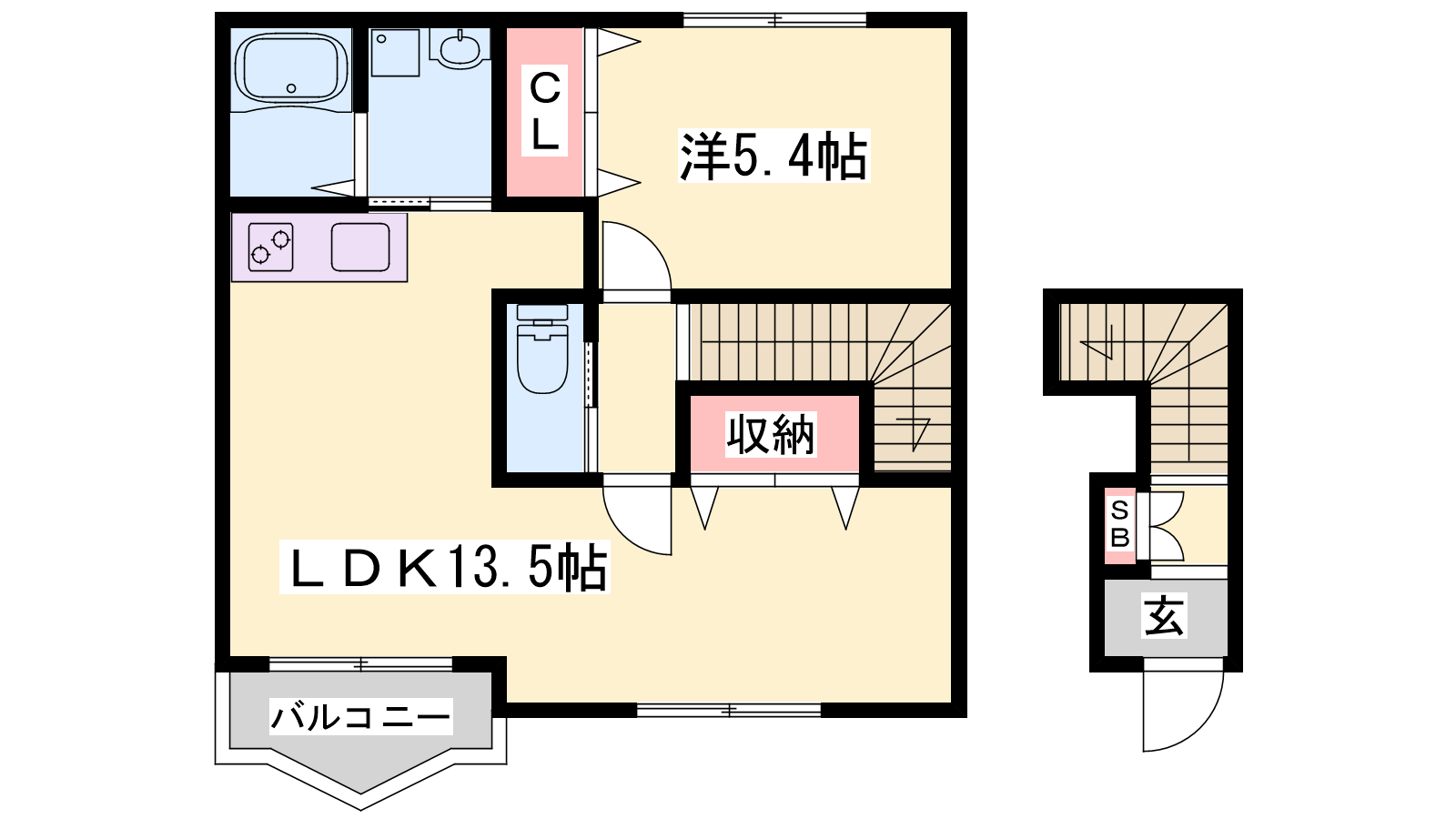 - LDK13.5帖、洋室5.4帖