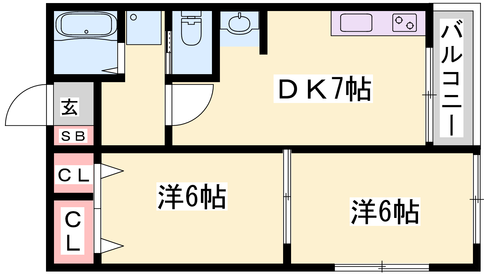 - DK7帖、洋室6帖、洋室6帖