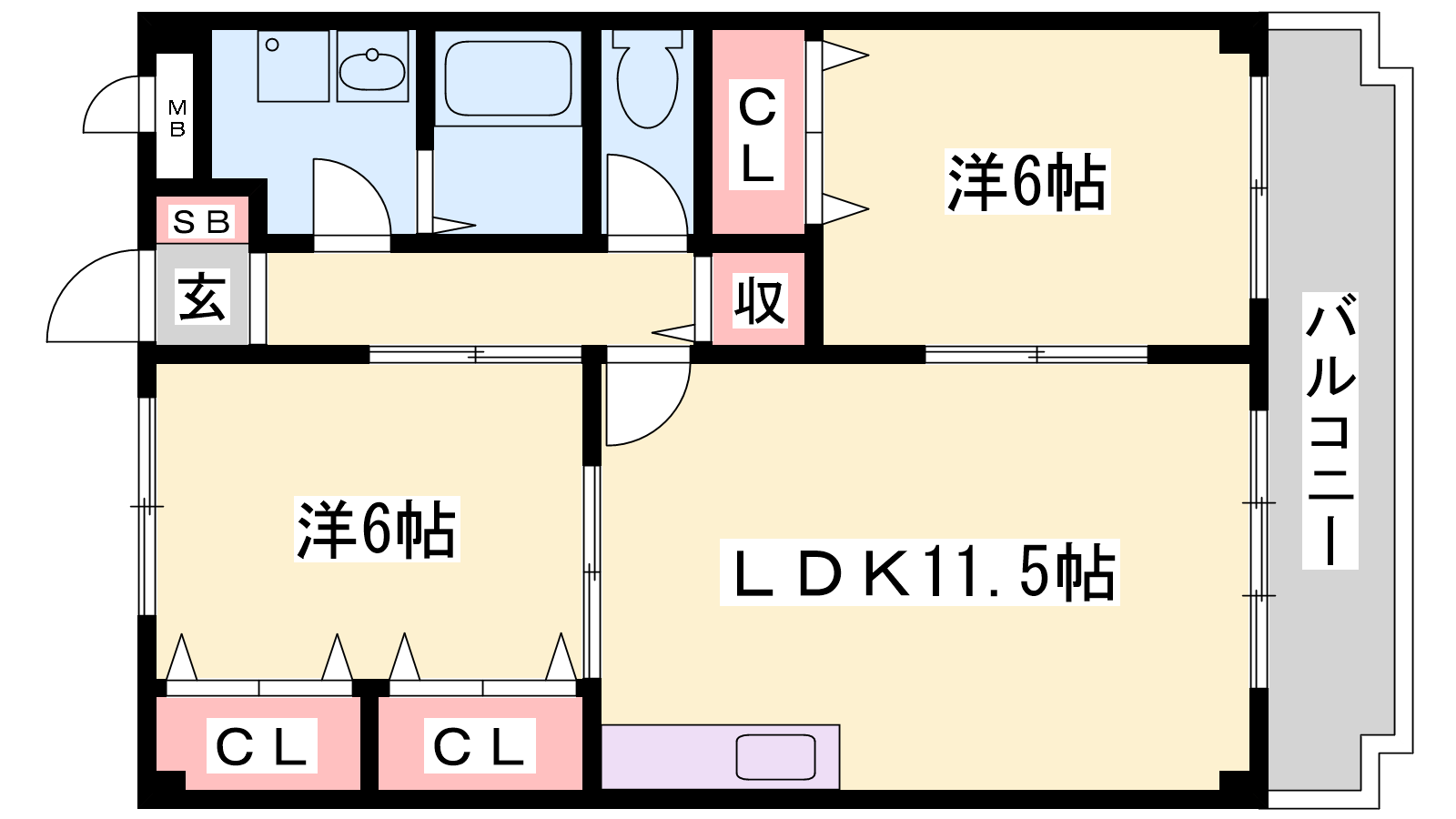 - LDK11.5帖、洋室6帖、洋室6帖