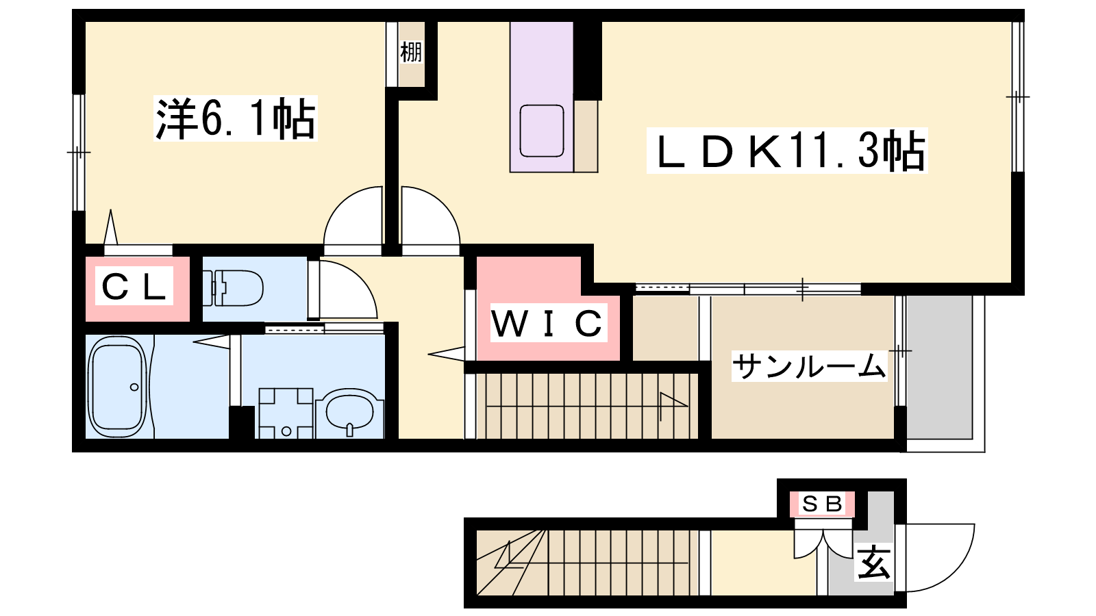 - LDK11.3帖、洋室6.1帖