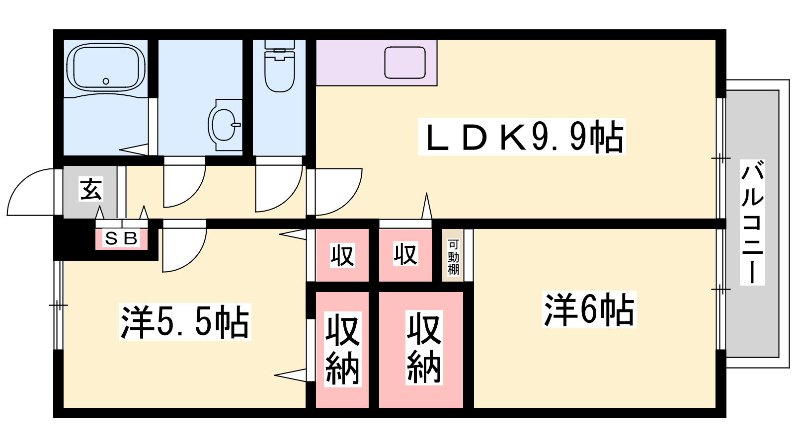 - LDK9帖、洋室5.5帖、洋室6帖