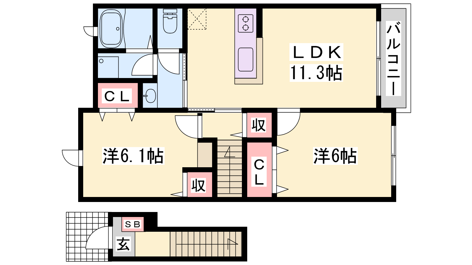 - LDK11.3帖、洋室6.1帖、洋室6帖