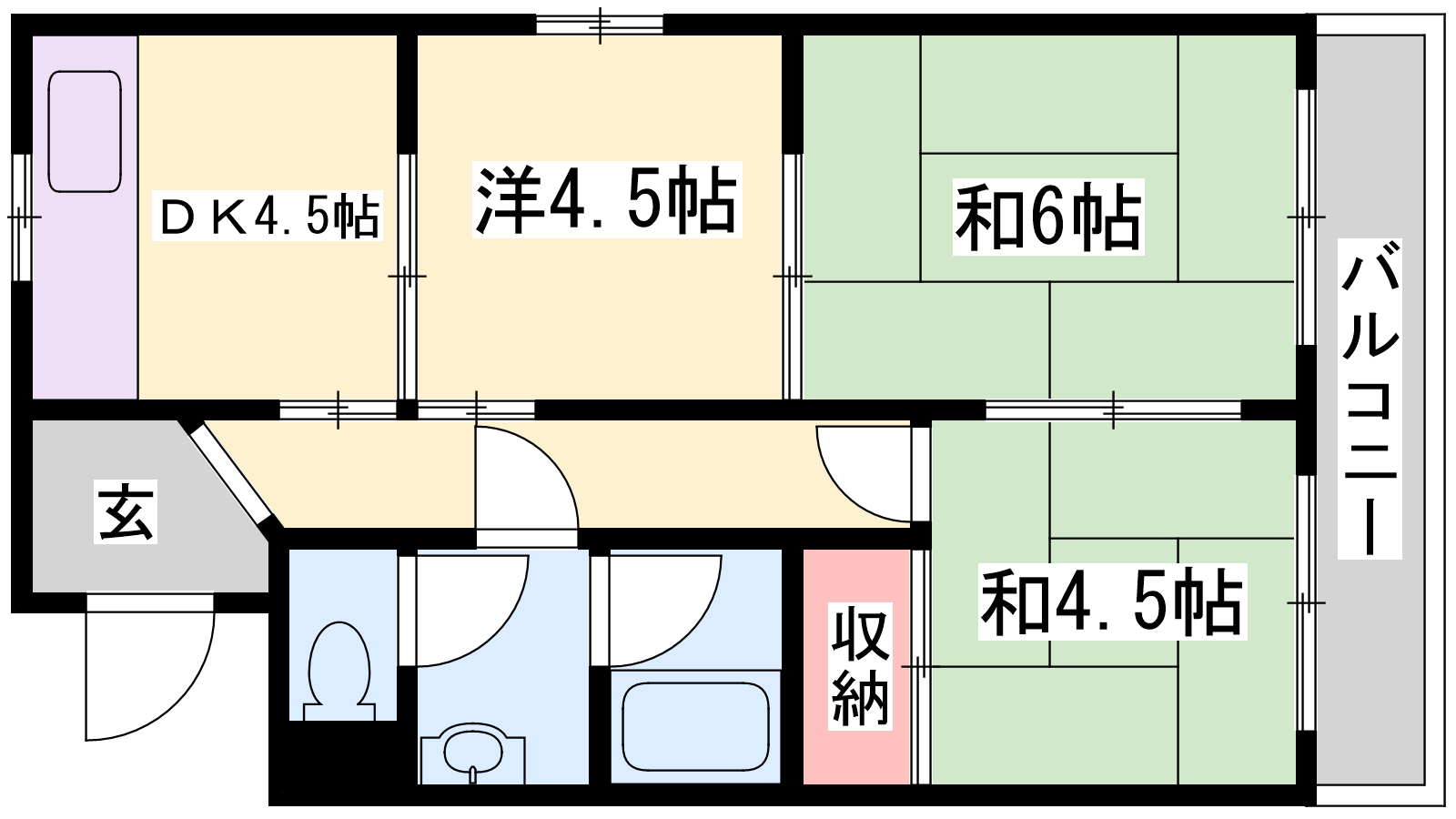 - DK4.5帖、和室6帖、洋室4.5帖、和室4.5帖