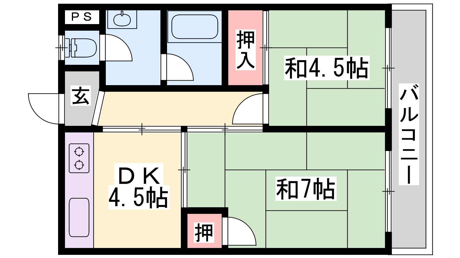 - DK4.5帖、和室4.5帖、和室7帖