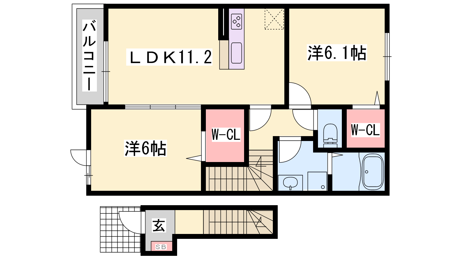 - LDK11.2帖、洋室6.1帖、洋室6帖