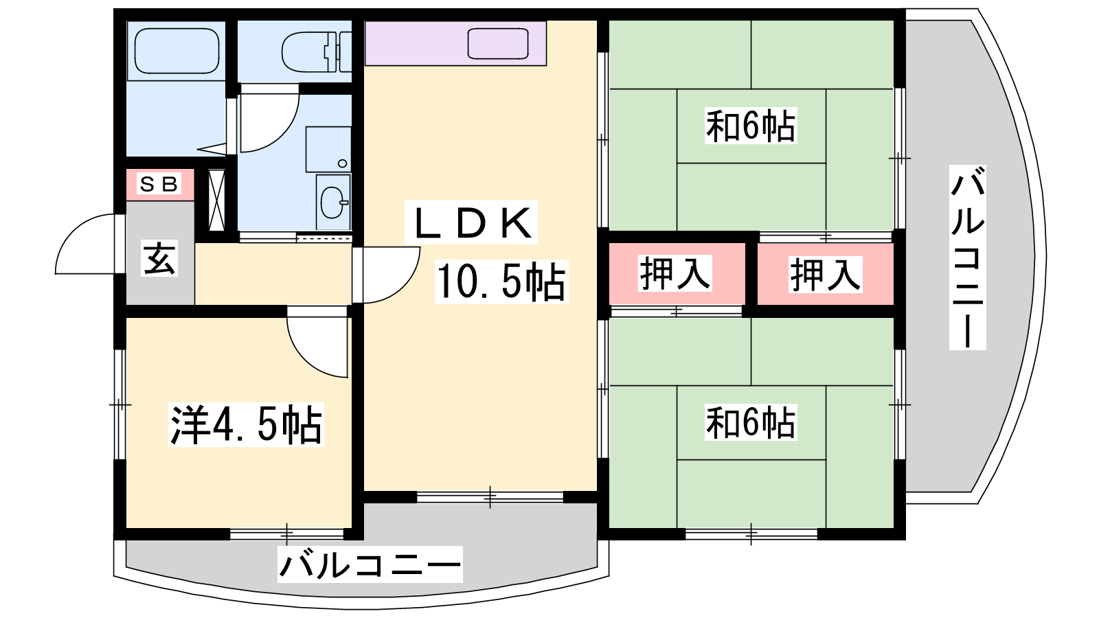 - LDK10.5帖、和室6帖、和室6帖、洋室4.5帖