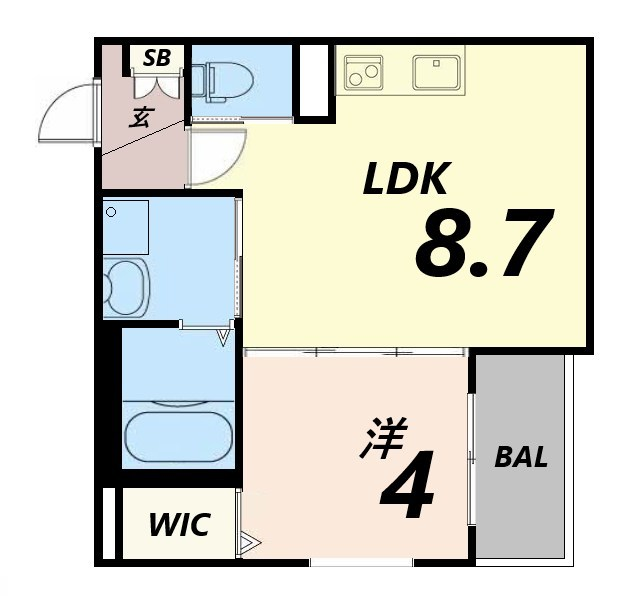 - LDK8.7帖、洋室4帖