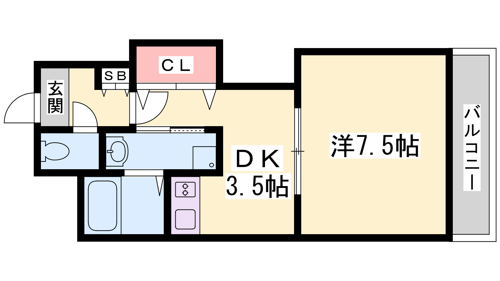 - DK3.5帖、洋室7.5帖