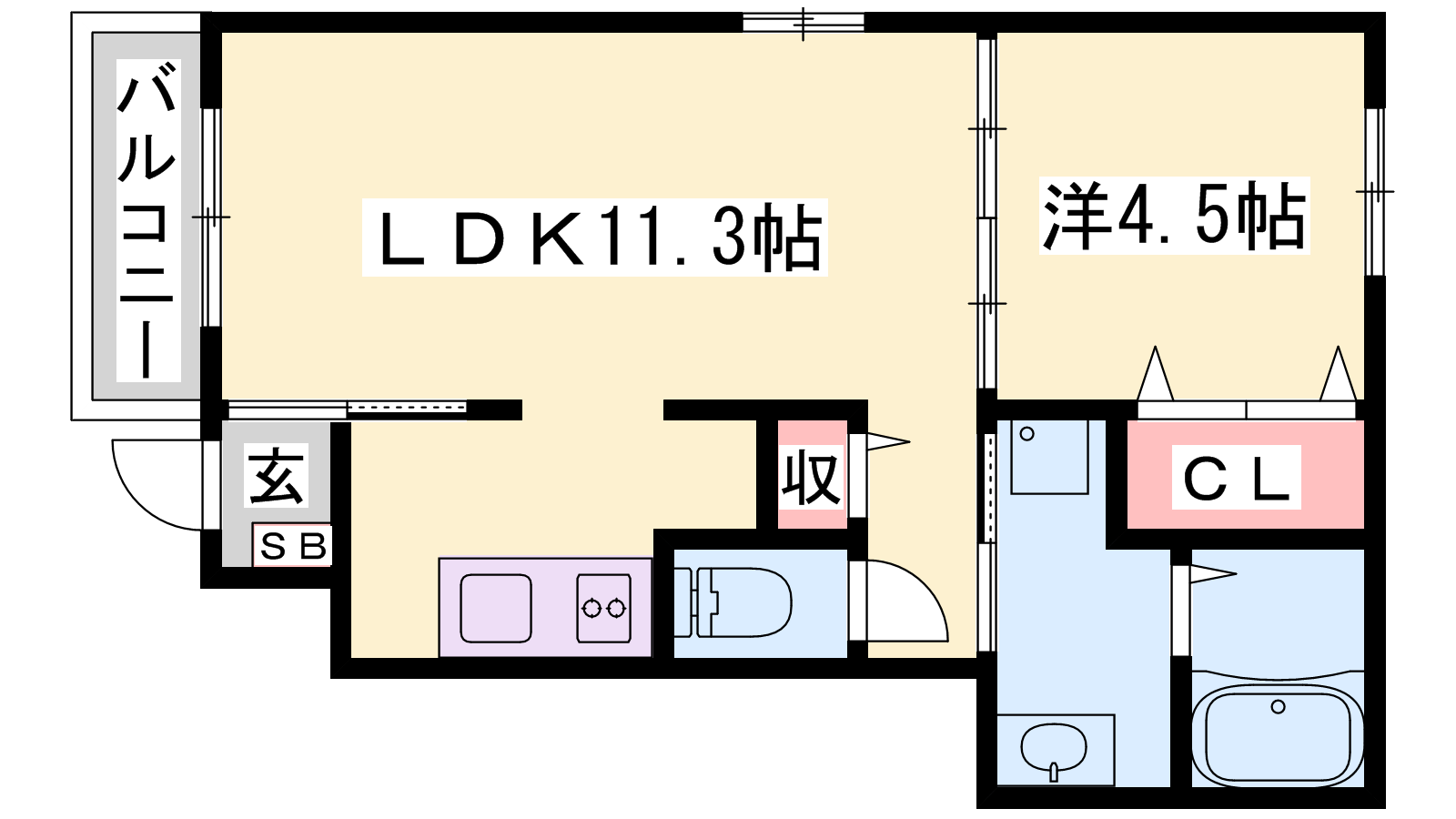 - LDK11.3帖、洋室4.5帖