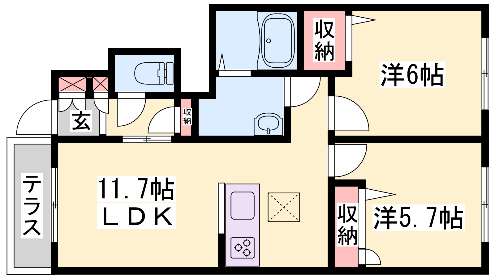- LDK11.7帖、洋室6帖、洋室5.7帖