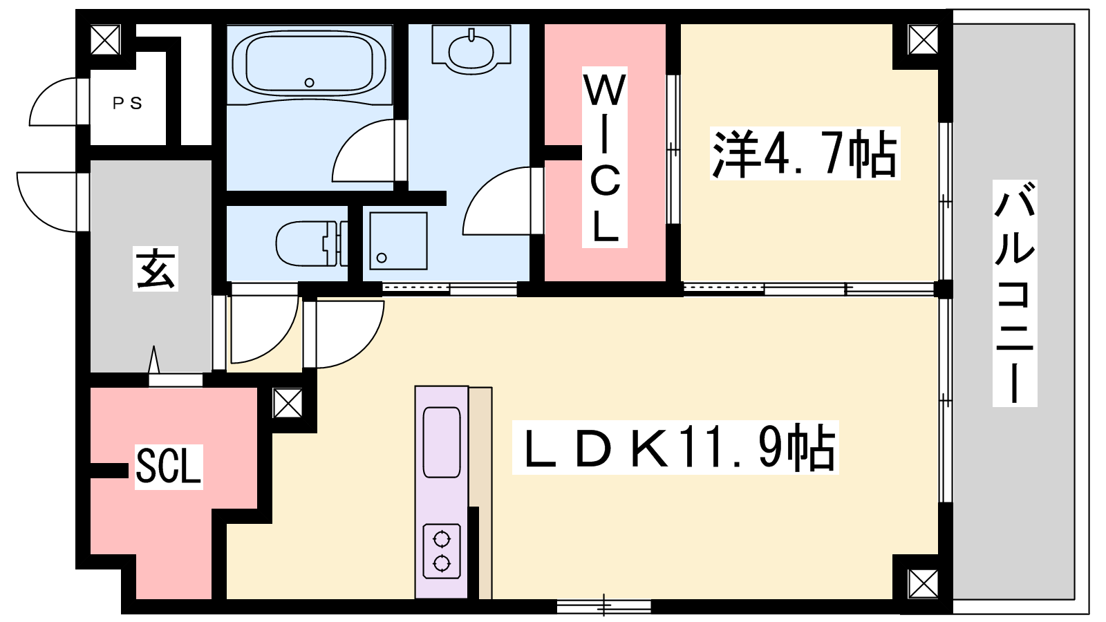 - LDK11.9帖、洋室4.7帖