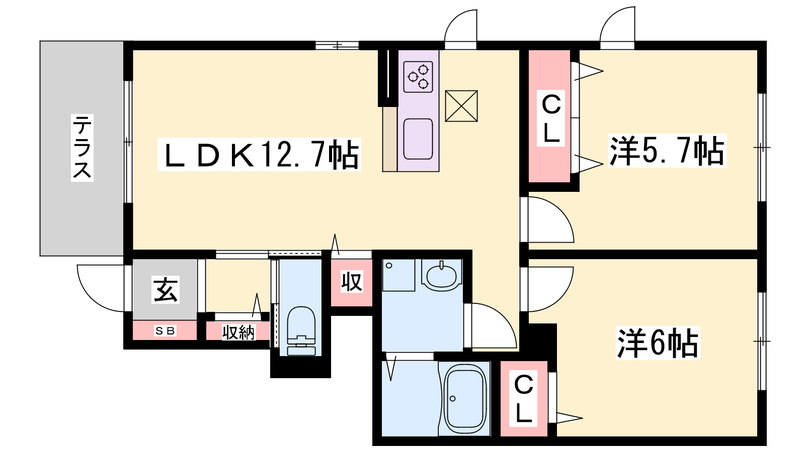 - LDK12.7帖、洋室6帖、洋室5.7帖