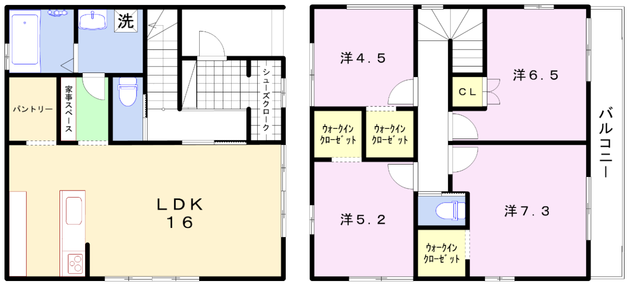 - LDK16帖、洋室7.3帖、洋室6.5帖、洋室5.2帖、洋室4.5帖