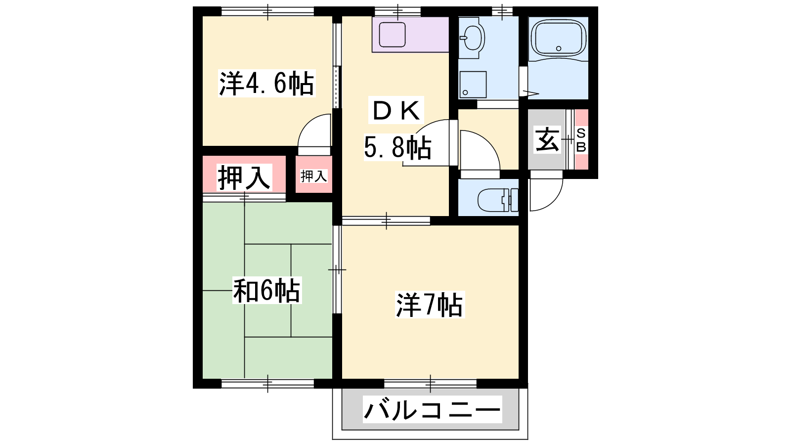 - DK5.8帖、洋室5.9帖、洋室4.6帖、和室6帖