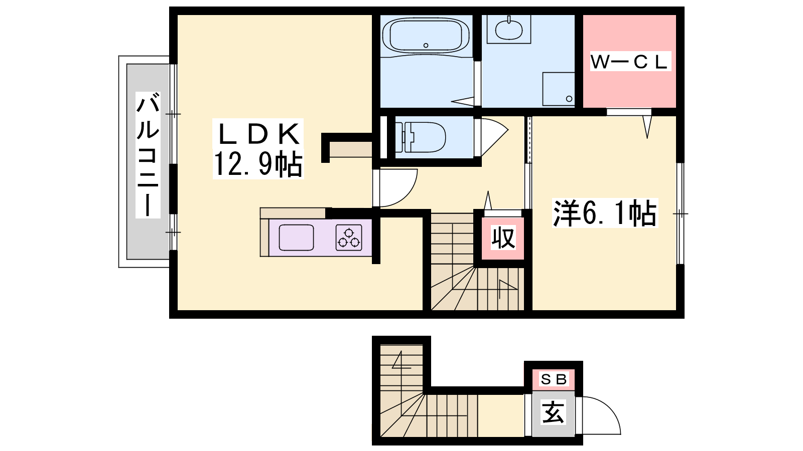 - LDK12.9帖、洋室6.1帖