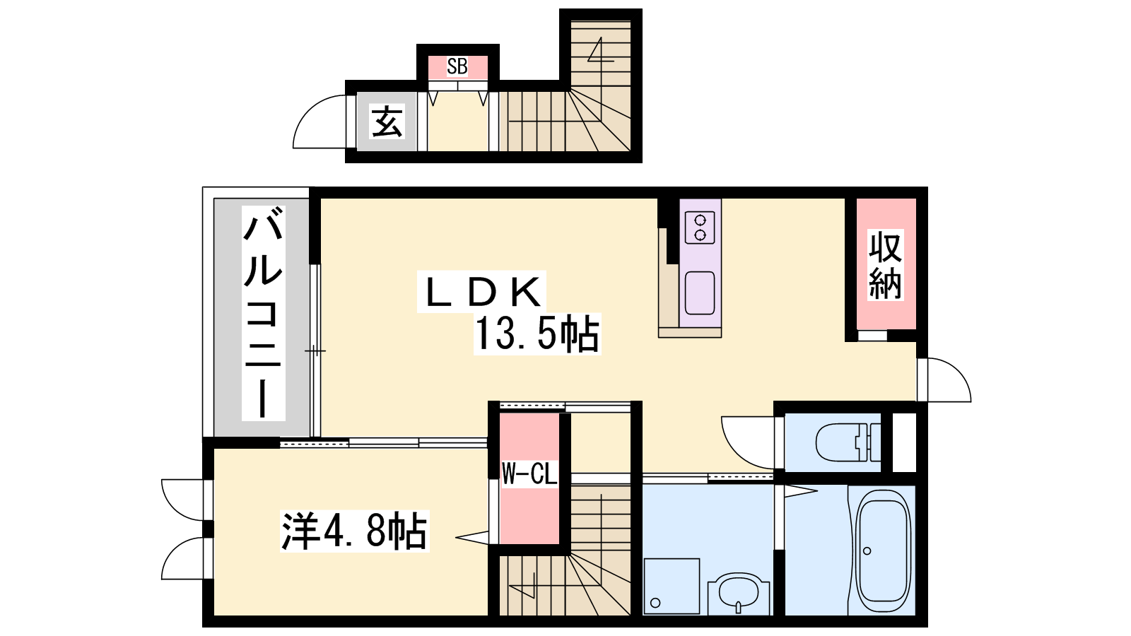 - LDK13.5帖、洋室4.8帖