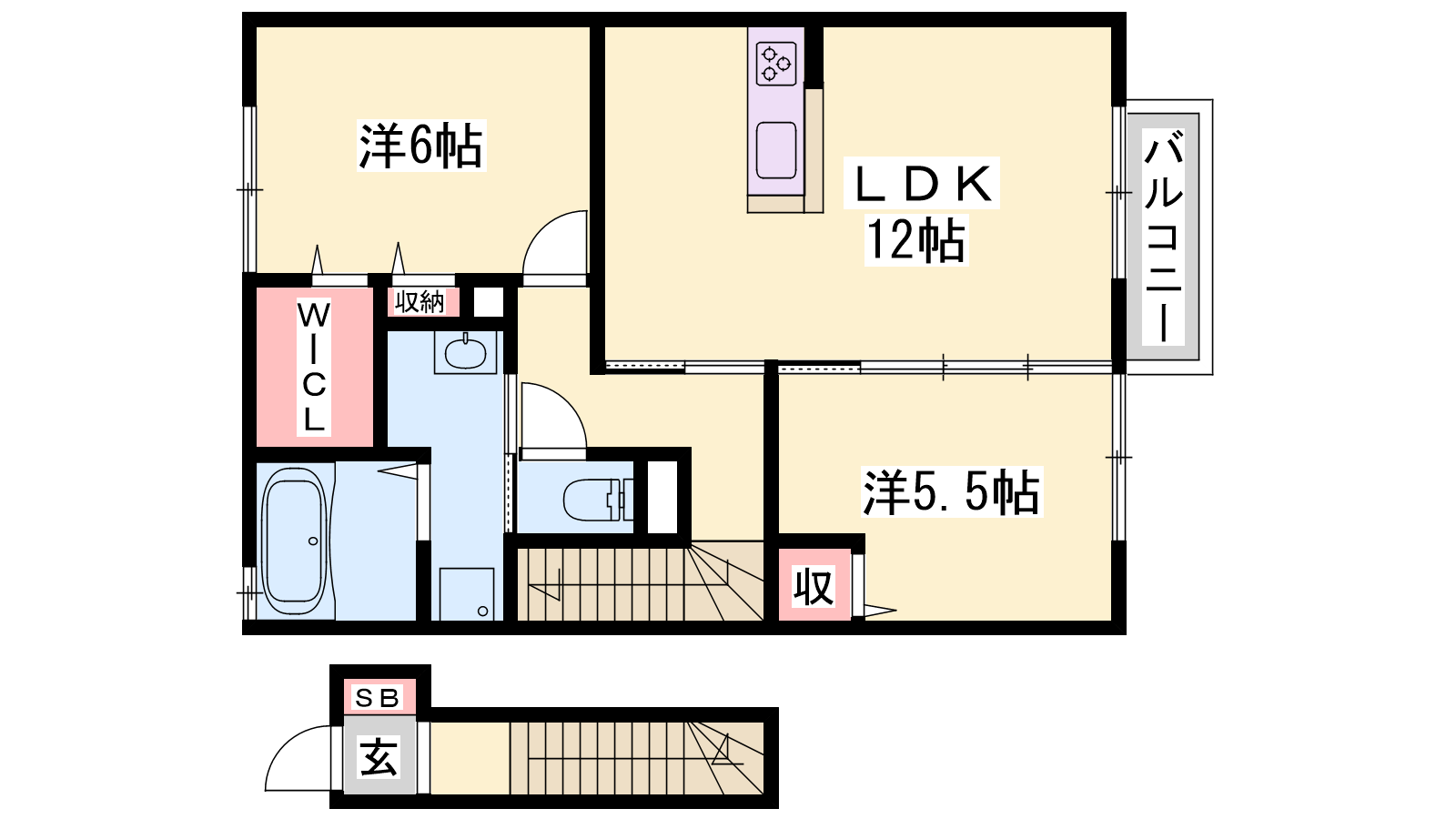 - LDK12.1帖、洋室6.1帖、洋室5.5帖