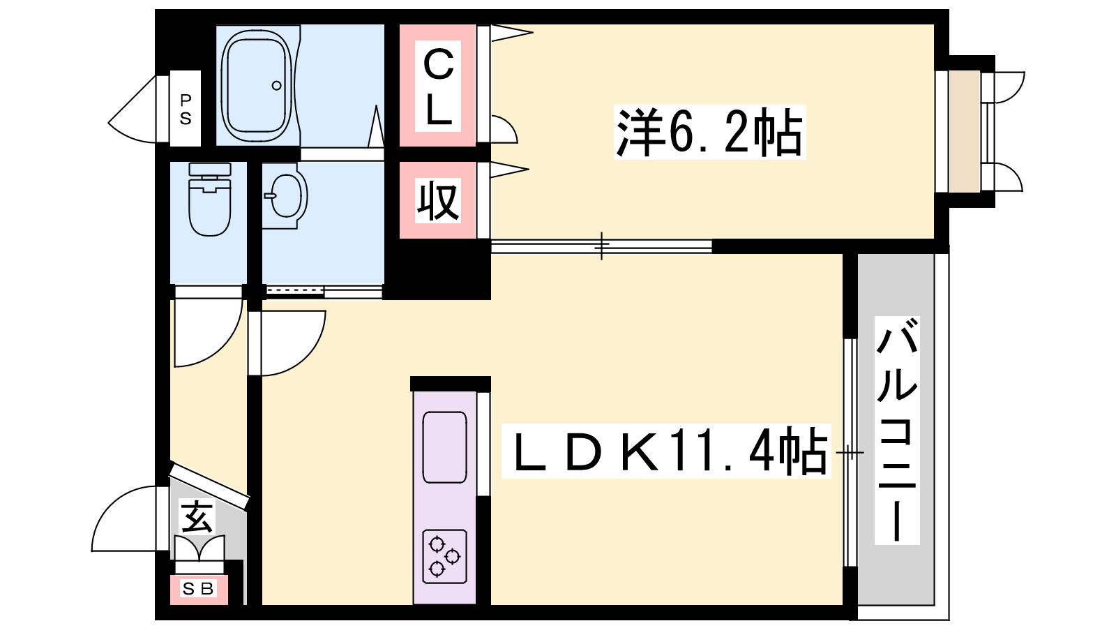 - LDK11.4帖、洋室6.2帖