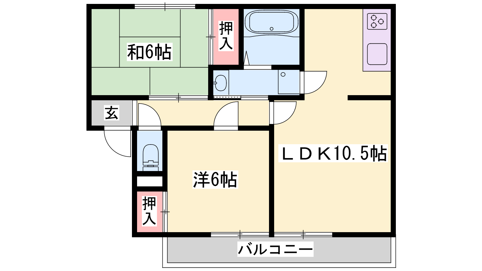 - LDK10.5帖、洋室6帖、和室6帖