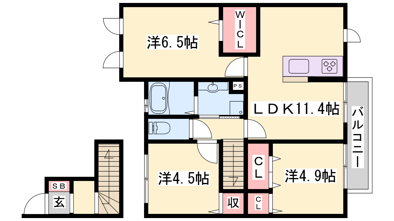 - LDK11.4帖、洋室6.5帖、洋室4.9帖、洋室4.5帖