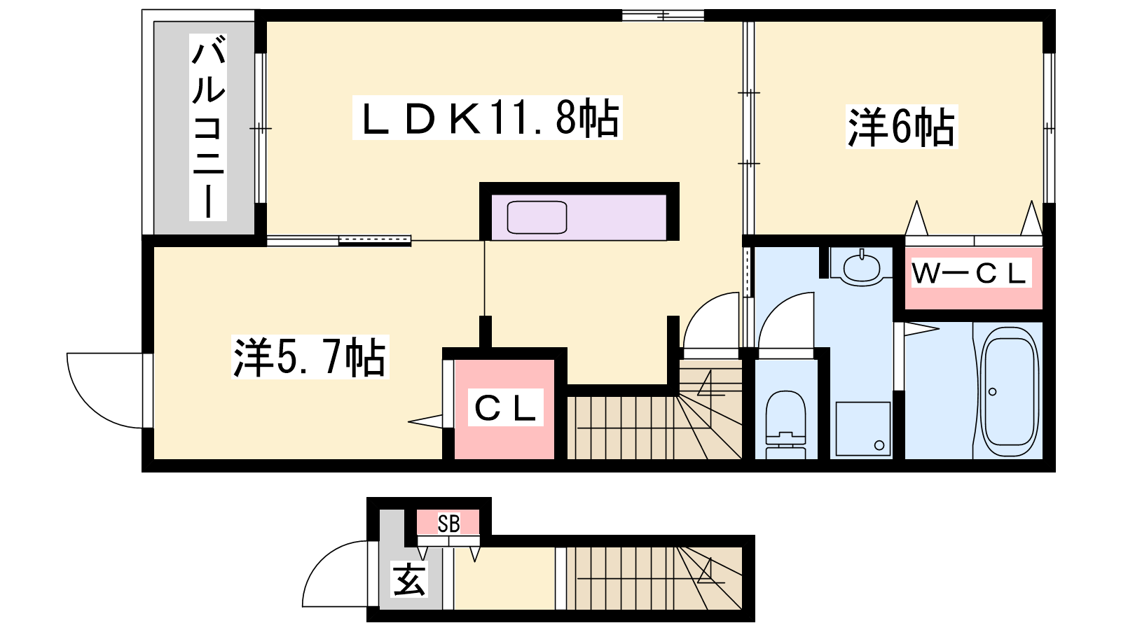 - LDK11.8帖、洋室6帖、和室5.7帖