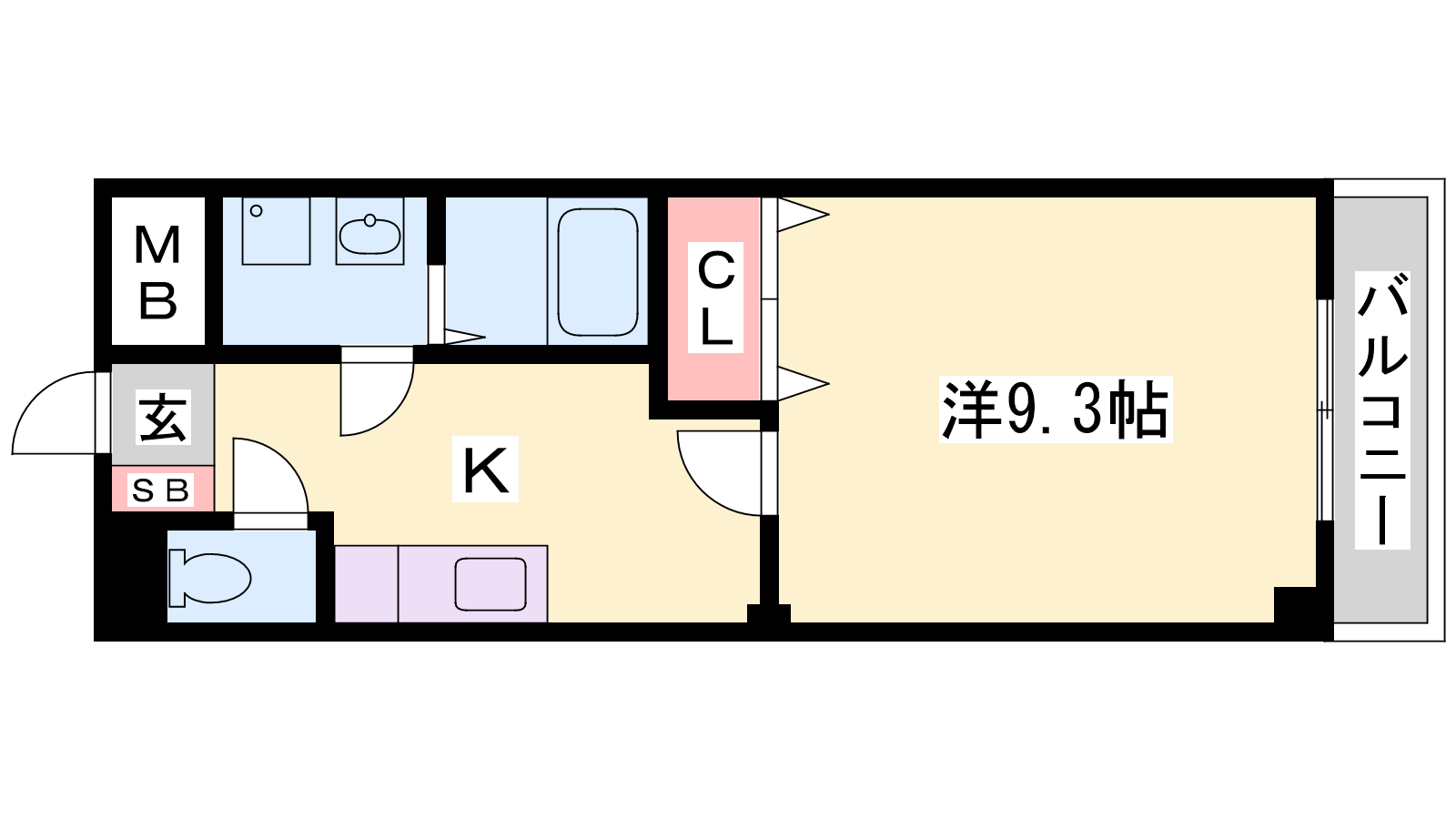 - K3帖、洋室9.3帖
