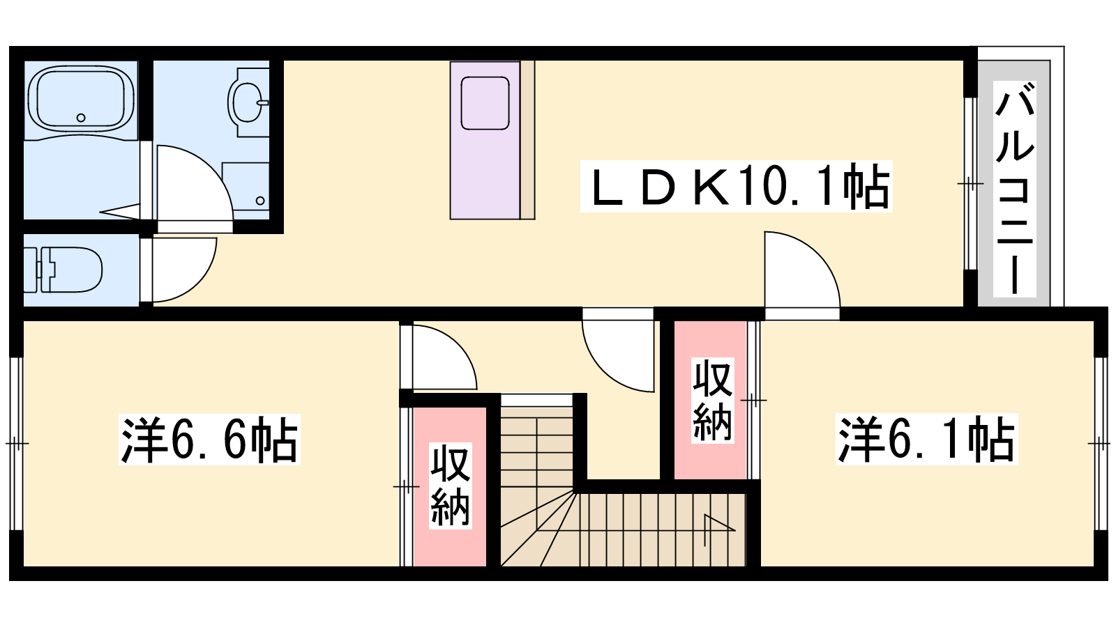 - LDK10.1帖、洋室6.6帖、洋室6.1帖