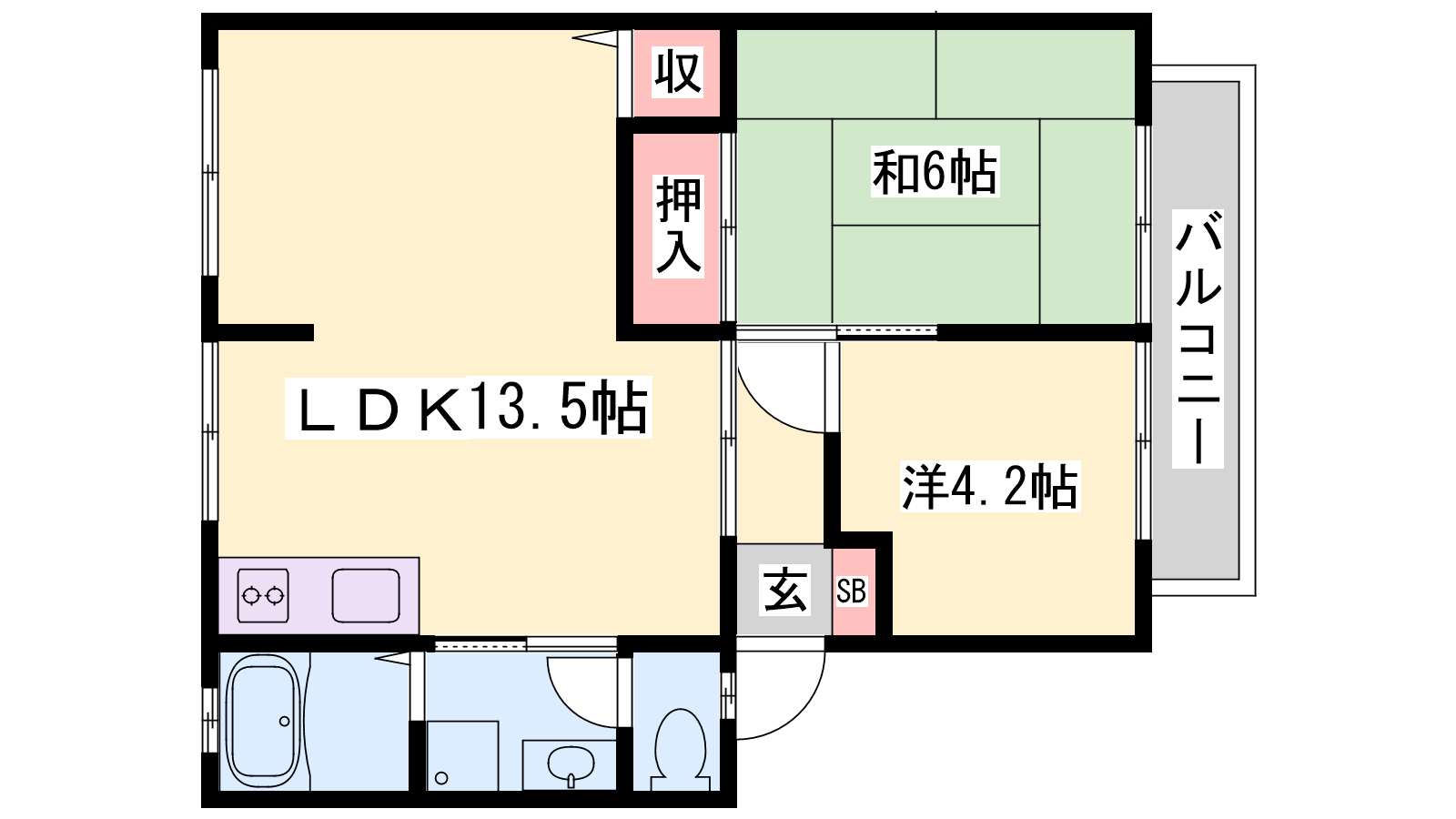 - LDK13.5帖、和室6帖、洋室4.2帖