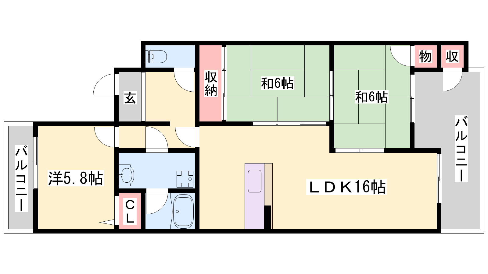 - LDK16帖、和室6帖、和室6帖、和室5.8帖